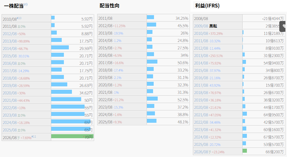 | 70円 | 4.58% | 0年 | 8年 | 30.4円 (1.88倍) | 9.18 | 1.67 |